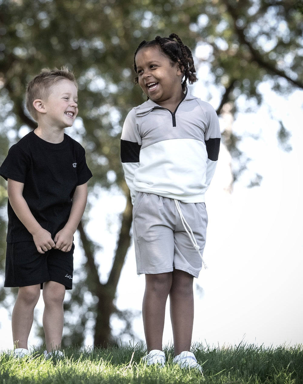 The sweatshirt's bold and fun color blocking design brings a playful touch to their outfit, while the soft, breathable fabric ensures all-day comfort. The matching shorts offer flexibility and ease of movement, ideal for active play or lounging at home. With its unique design and cozy fit, the Tri-Color Drip Set is sure to become a favorite go-to in your child's wardrobe.