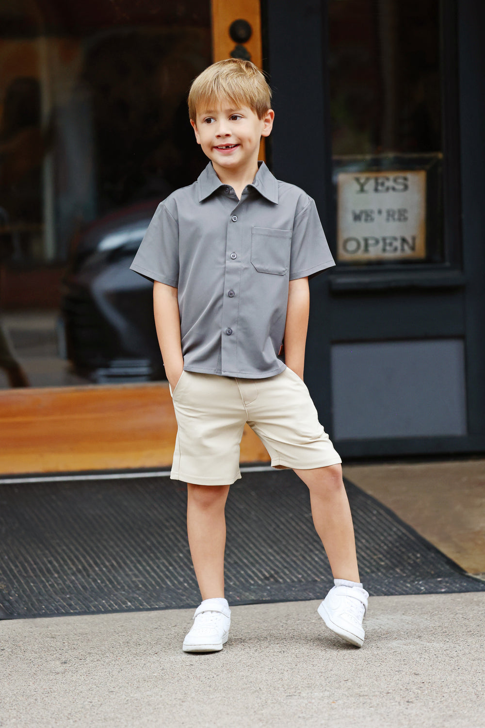 Made from a lightweight polyester and spandex blend, the Breeze Stretch Shorts offer breathable comfort with just the right amount of stretch. From family photos to backyard adventures, they’re the perfect all-day, every-day shorts.