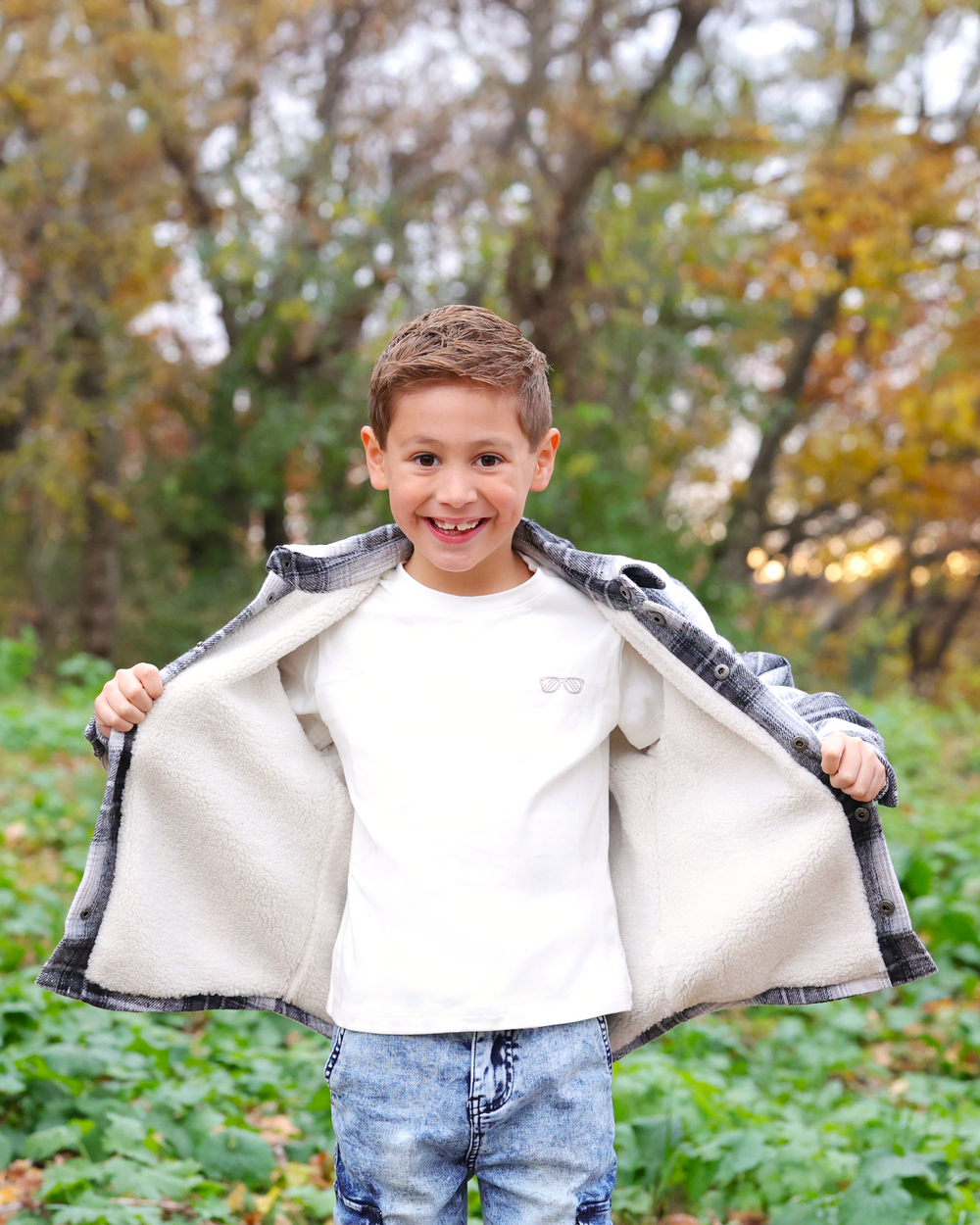 Meet the “Big Guy” Shacket, a rugged yet cozy essential designed for kids who like to explore in style. With plush sherpa lining throughout the entire jacket, this shacket delivers warmth, comfort, and that effortlessly cool GILi Guise vibe.