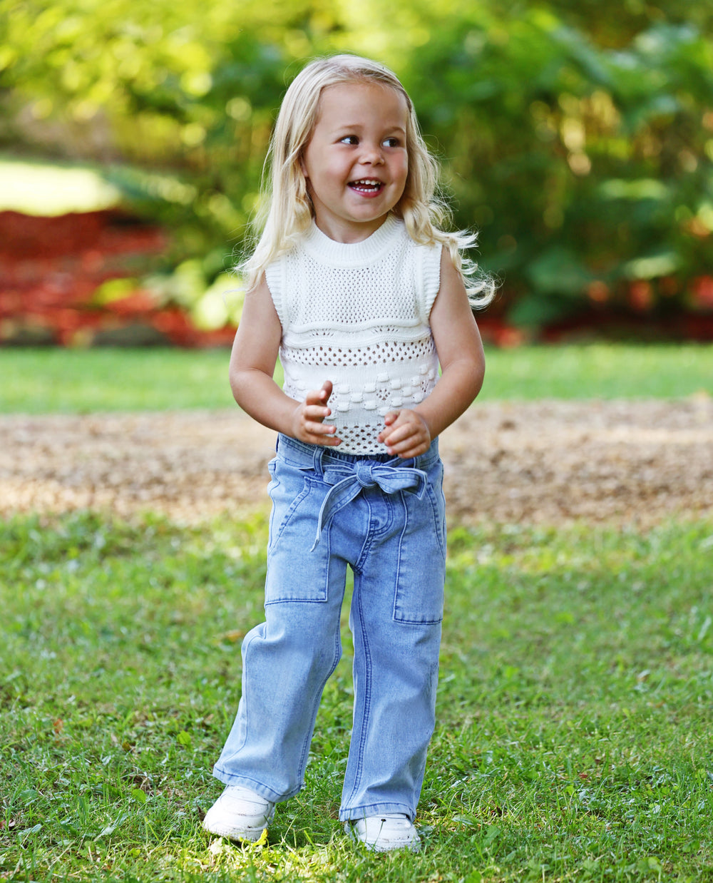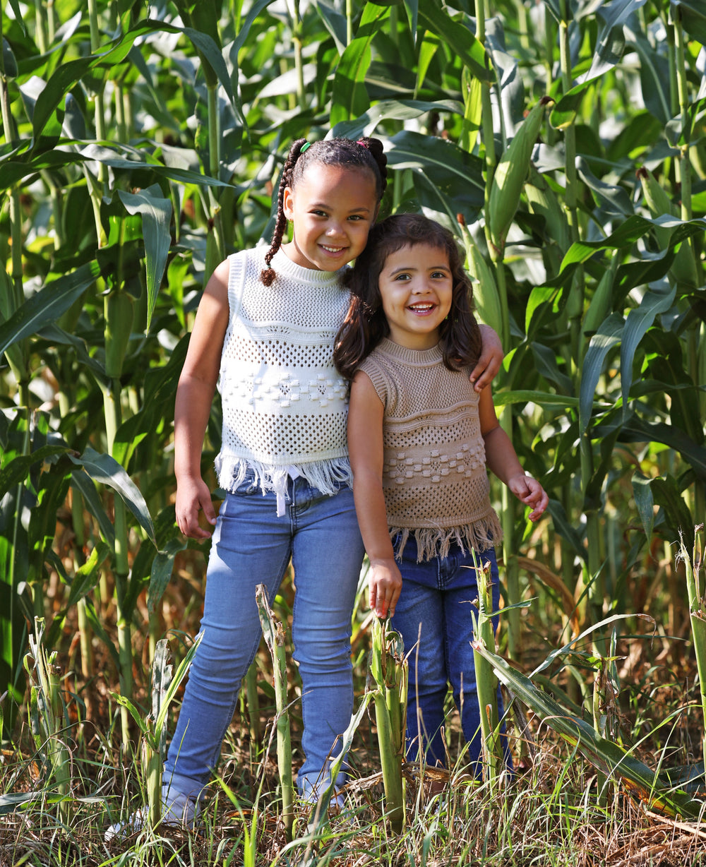 Add a touch of boho charm to your child's wardrobe with our Calypso Top. Perfect for any season, this adorable top features intricate crochet patterns and playful fringe detailing.
